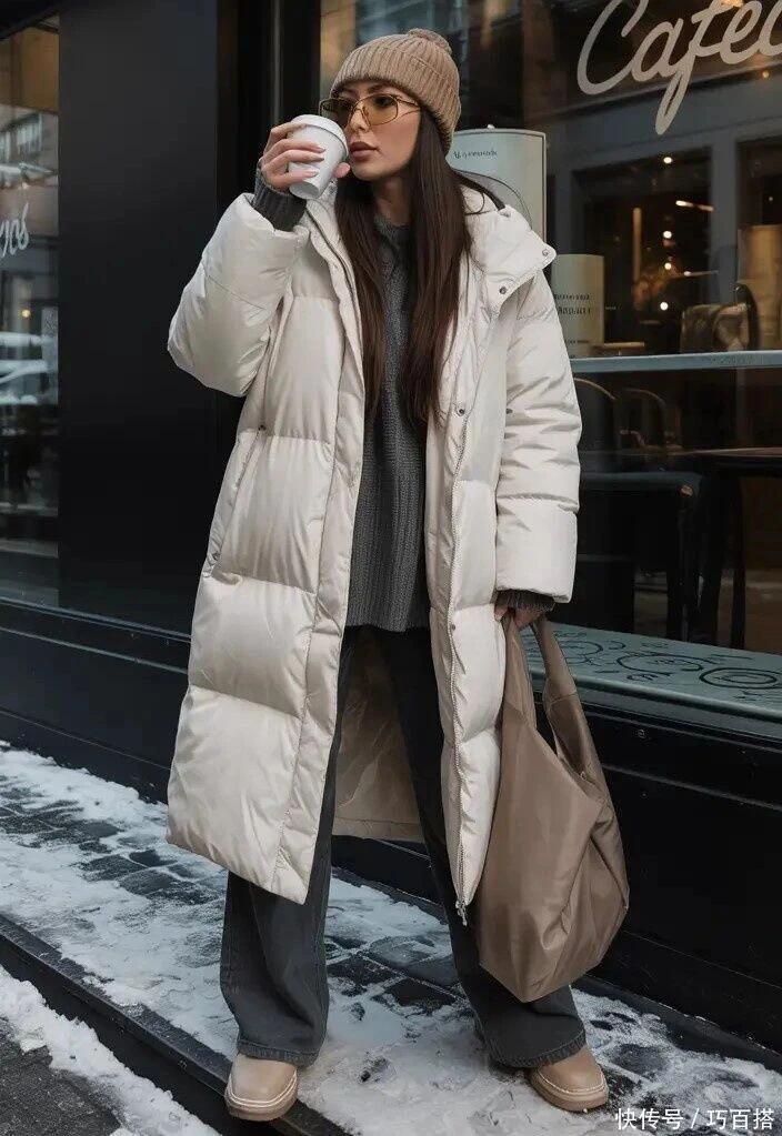 阔腿裤与之搭配,可以解决鞋子不加棉问题,拖地长度防止钻风,保暖又洋气,上脚效果十分慵懒,小个子姐妹穿上不会打压身高,高个子姐妹穿上潇洒自如。