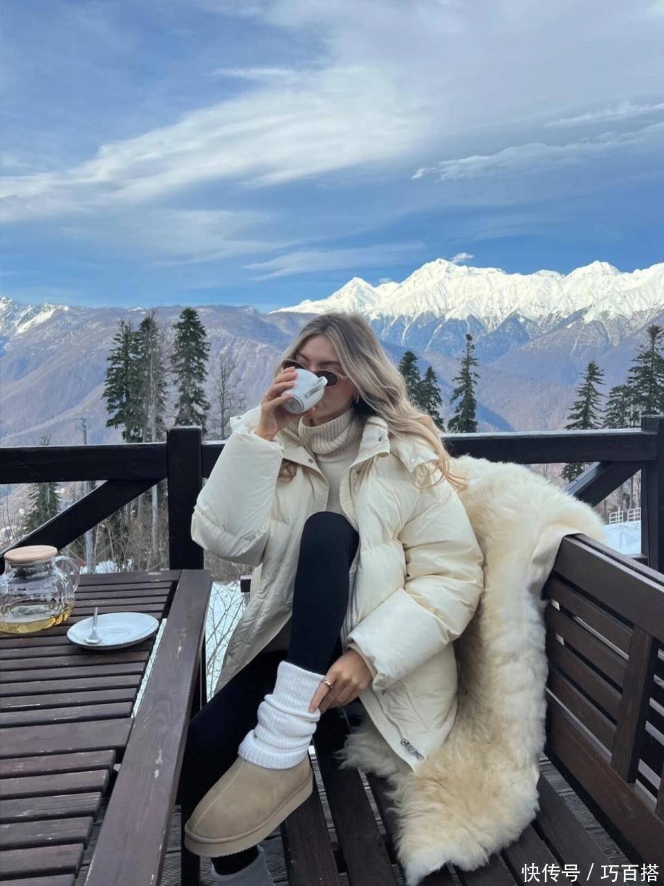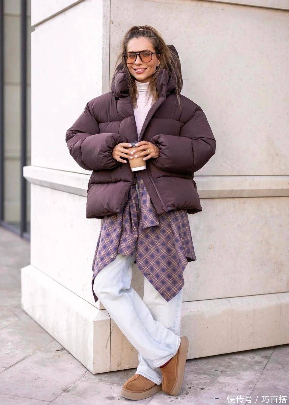 冬天选择驼色雪地棉搭配模式多样,大家不用担心找不到适合自己的,除了羽绒服+牛仔裤组合外,大家也可以选择羽绒服+瑜伽裤,紧身长裤上身既能保暖又能显腿长、腿细,骨感型美女别错过。