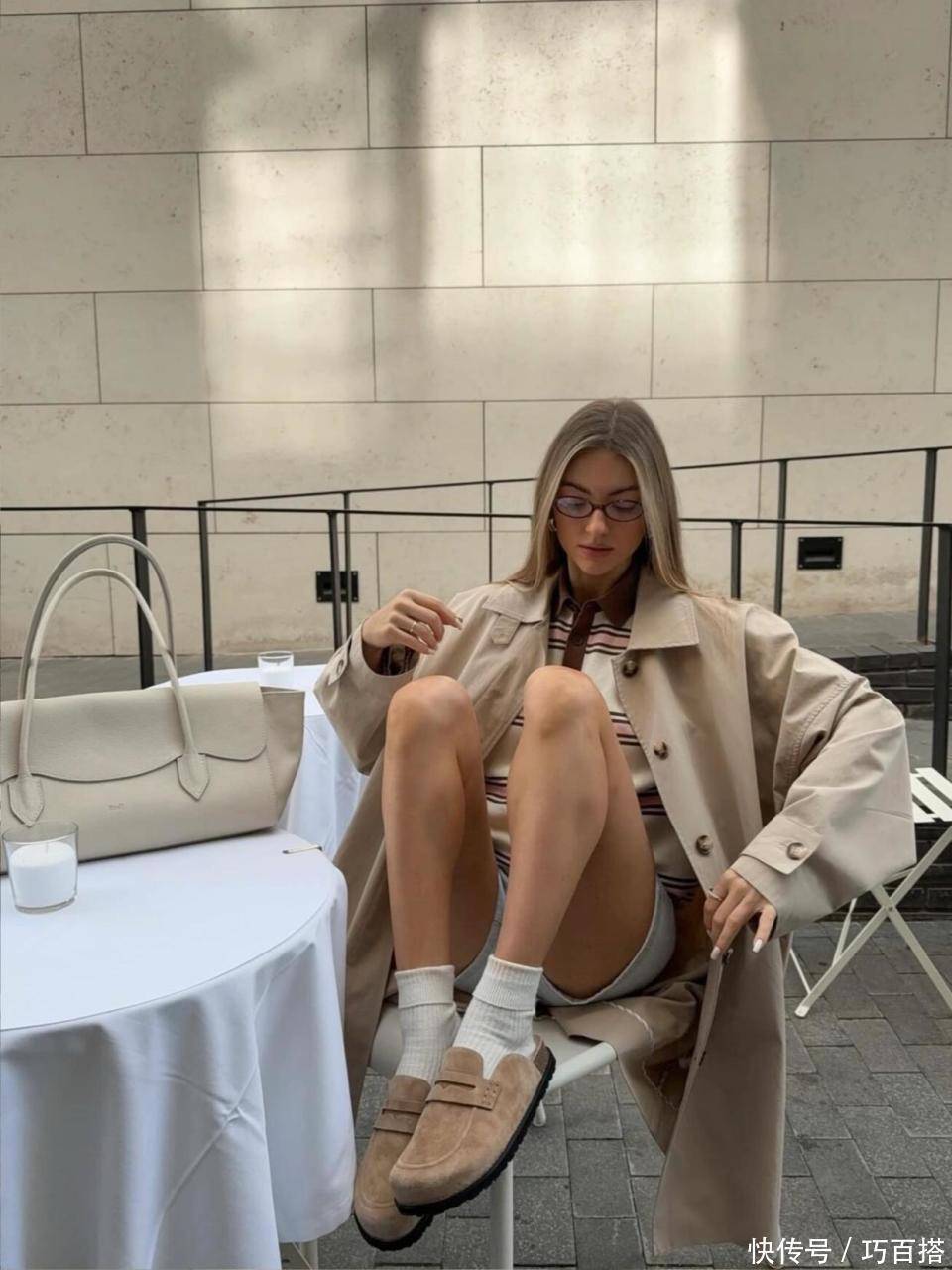 值得一提的是,驼色勃肯鞋还可以和瑜伽裤搭配,利用堆堆袜也能穿出保暖得体效果。