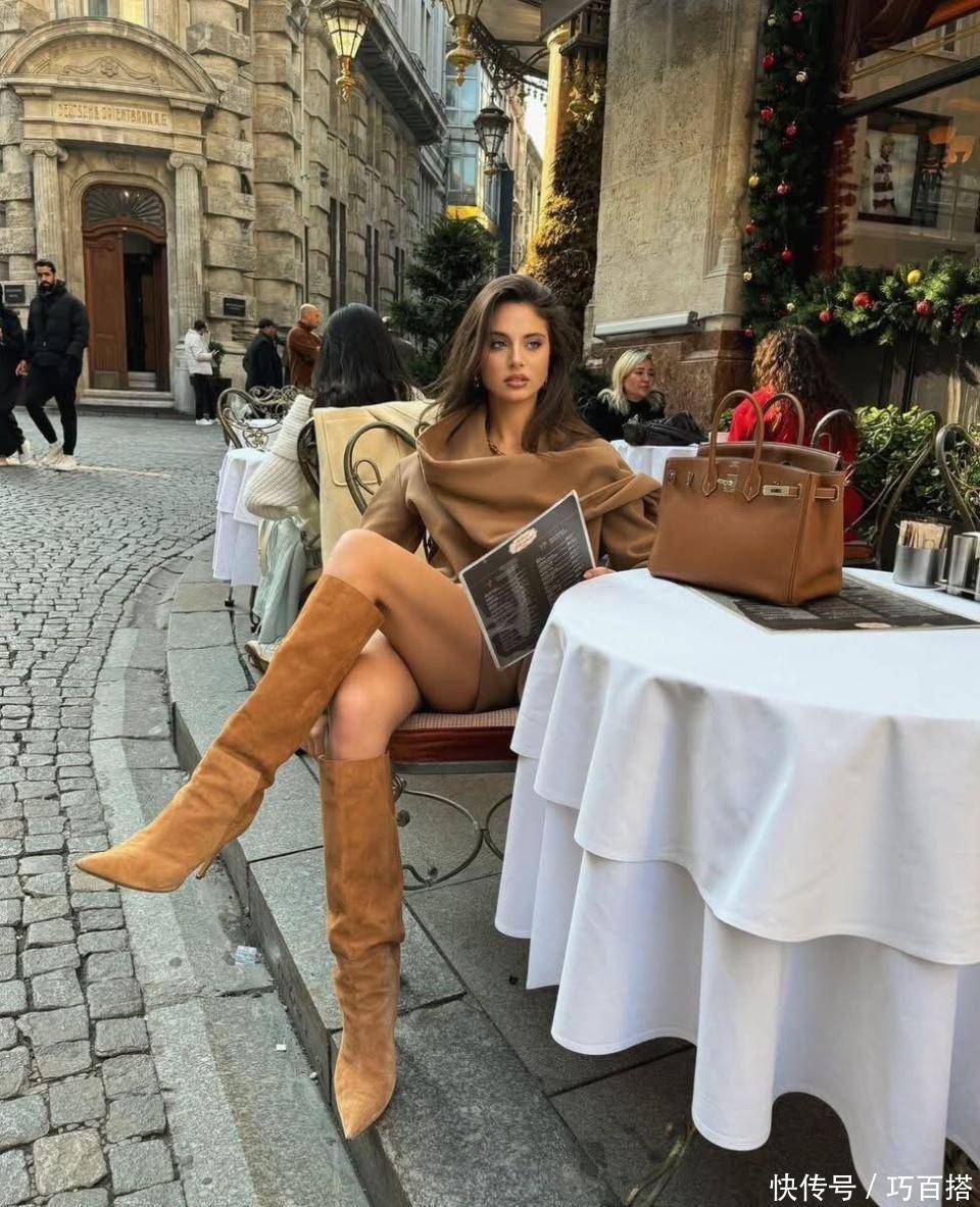 另外,在驼色长靴的选择上,尖鞋头是标配,细高跟或者2-3cm方跟可以穿出女王范,高个子姐妹、小个子姐妹都能选。